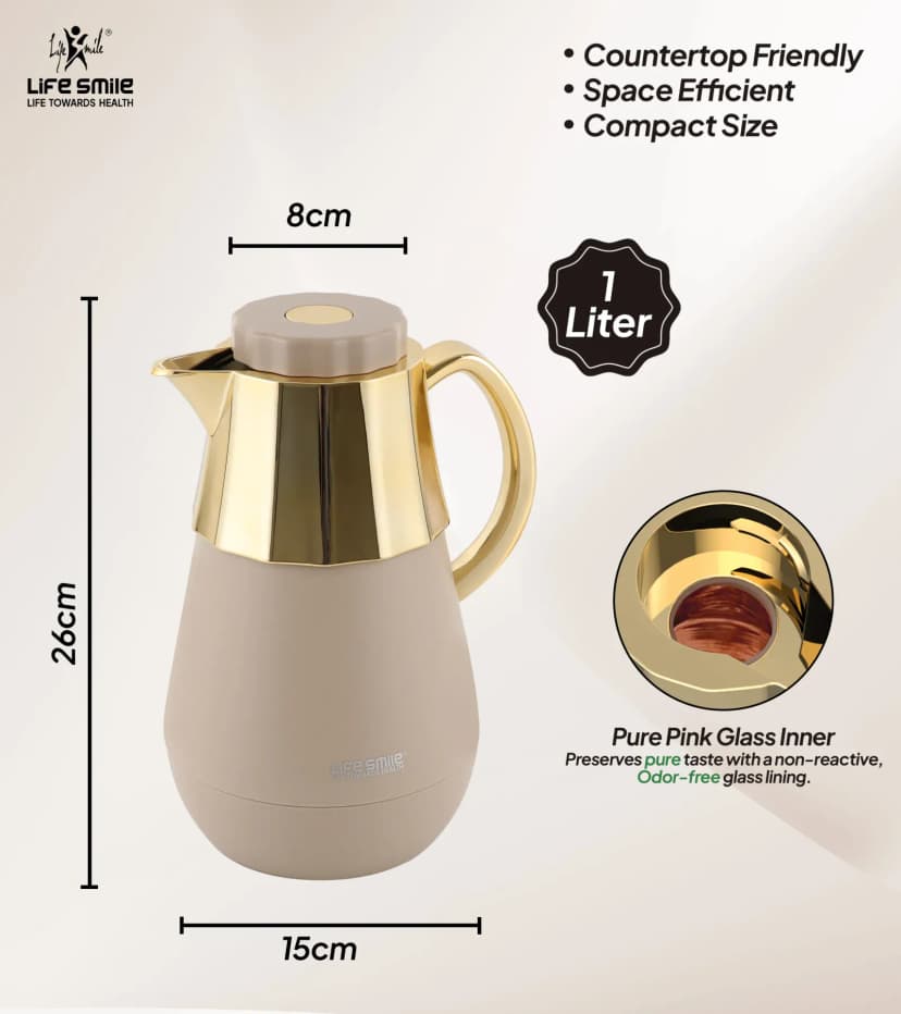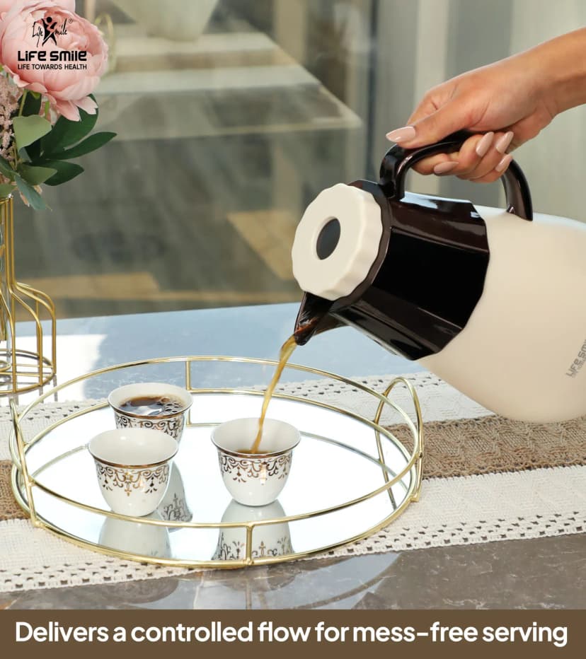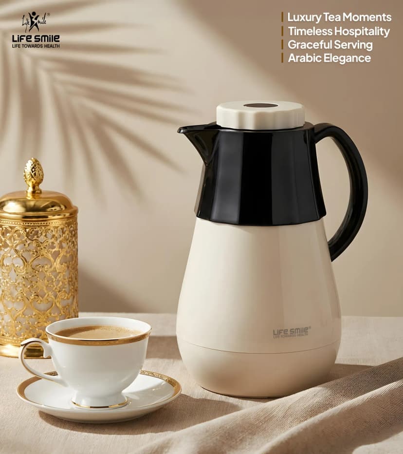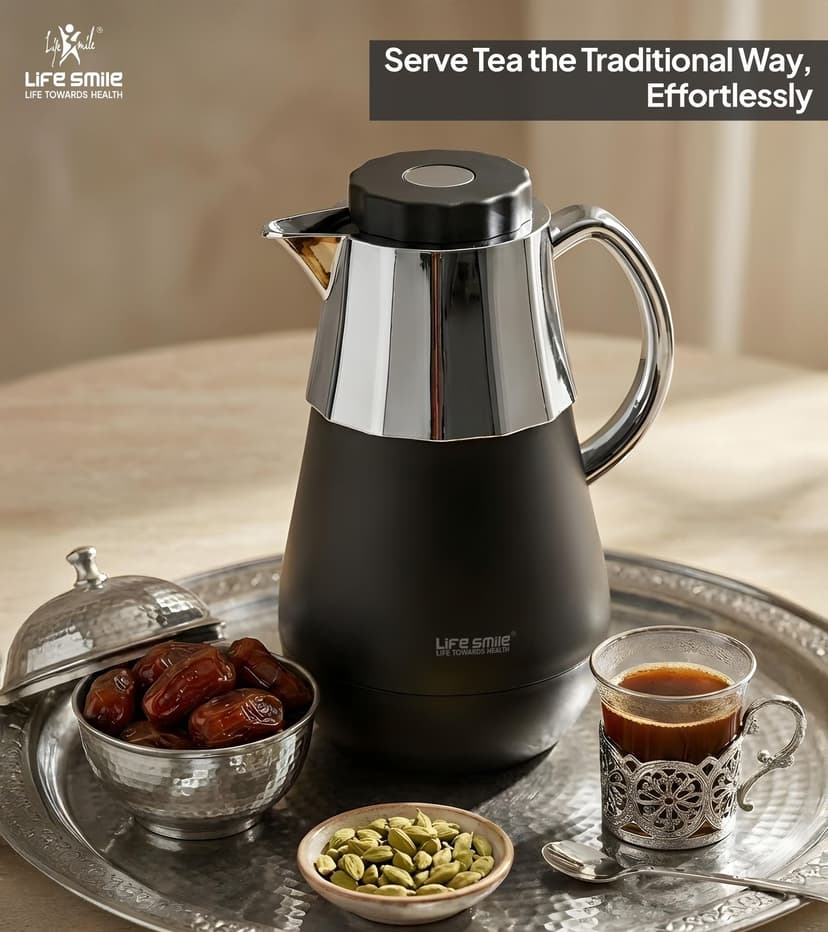 استمتع بأفضل تجربة شاي وقهوة من أي مكان سواء المنزل او المكتب او في الرحلات والتجمعات مع ترمس القهوة والشاي لايف سمايل  سعة 1 لتر .