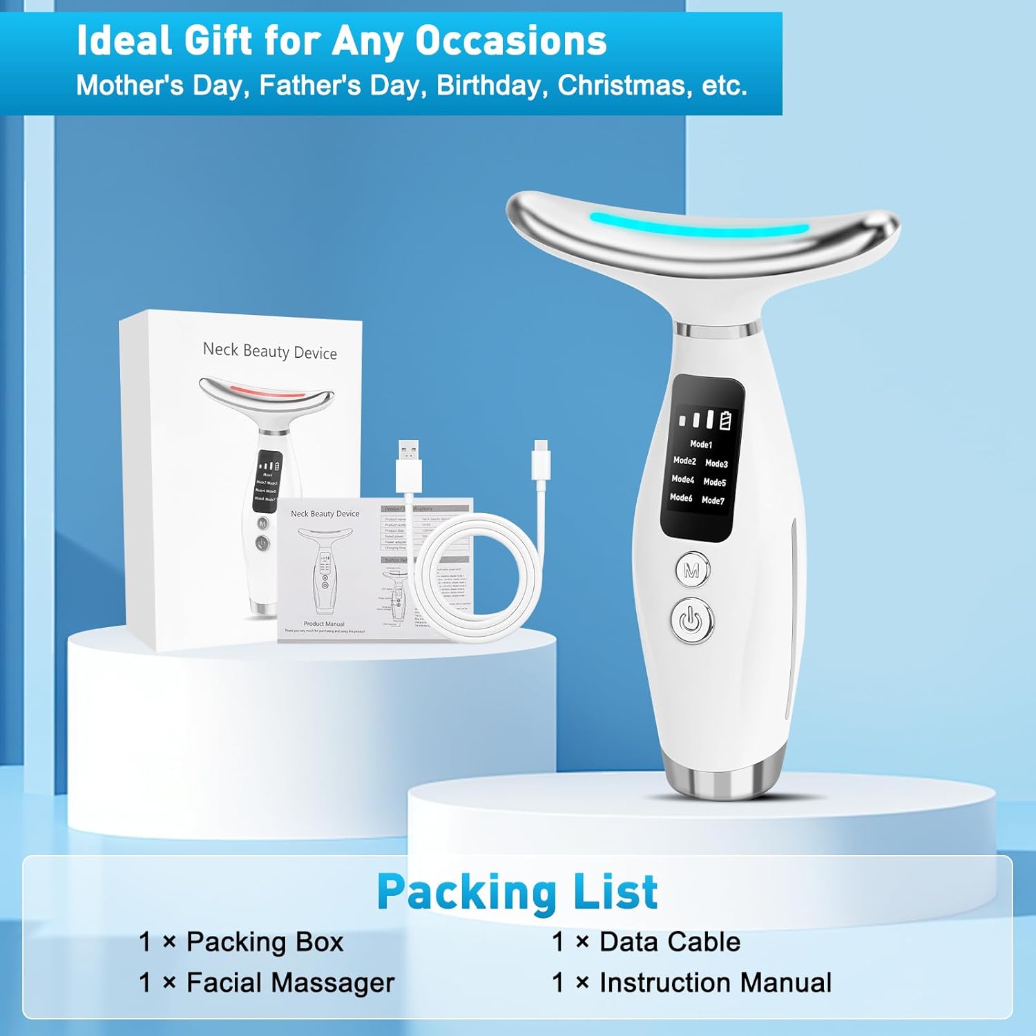 - سهل الاستخدام: قم بوضع منتجات العناية بالبشرة المفضلة لديك على رقبتك ووجهك ، ثم استخدم رأس التدليك لرفع منطقة الرقبة بلطف ونحت منطقة الرقبة من الأسفل إلى الأعلى .