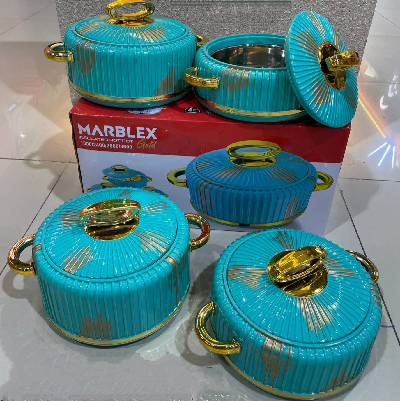 حافظات طعام تصميم رخامي أنيق وفاخر عالية الجودة صناعة هندية مؤلفة من 4 قطع مع أغطية ومقابض ذهبية عصرية مع ملعقة هدية .