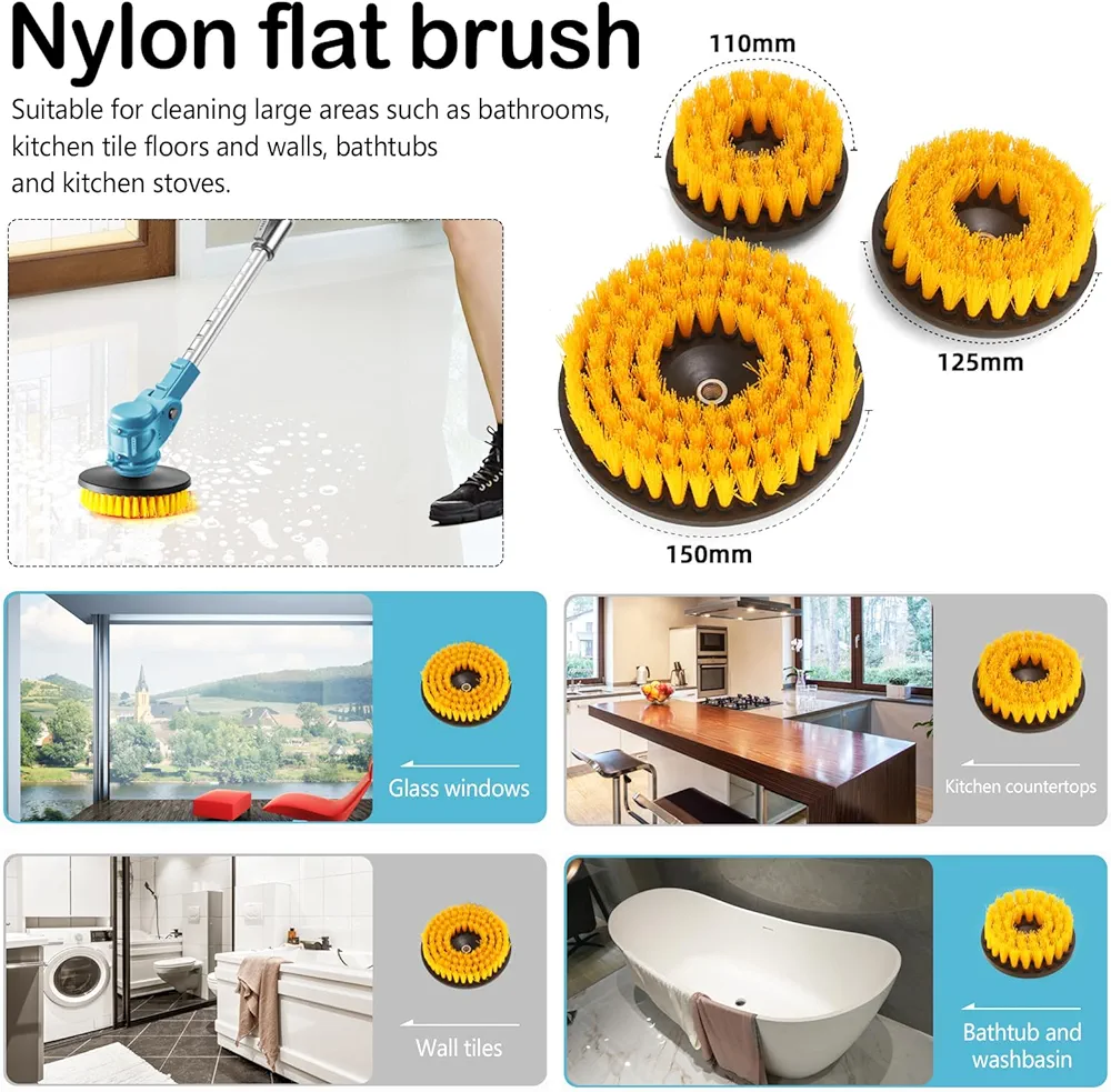 - 3 رؤوس فرشاة بأحجام وأشكال مختلفة لتناسب التنظيف في كافة الظروف من الزوايا الضيقة إلى المساحات الواسعة .